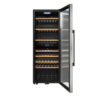 Vapaasti seisova viinikaappi ranskalaiselta La Sommelière jopa 75 pullon kapasiteetilla (Bordeaux). Varastoi ja organisoi viinikokoelmasi kahdessa eri osastossa joissa lämpötila voidaan säätää yksilöllisesti. Trendikäs muotoilu joka sopii kotiin kuin kotiin. Viinikaapissa on UV-suojattu lasiovi, puuhyllyt, teräksinen kahva, sekä oven lukitusmahdollisuus.